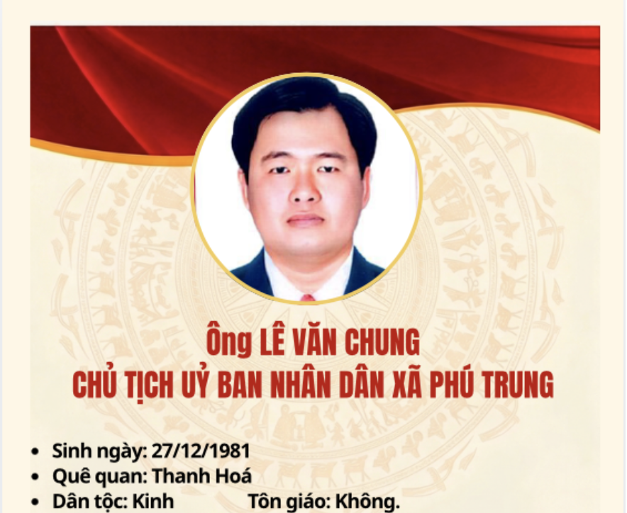 Chiều 27/3, tại Kỳ họp thứ Nhất, HĐND xã Phú Trung khóa VII đã bầu đồng chí Lê Văn Chung – Phó Bí thư Đảng uỷ giữ chức vụ Chủ tịch UBND xã nhiệm kỳ 2026 - 2031.