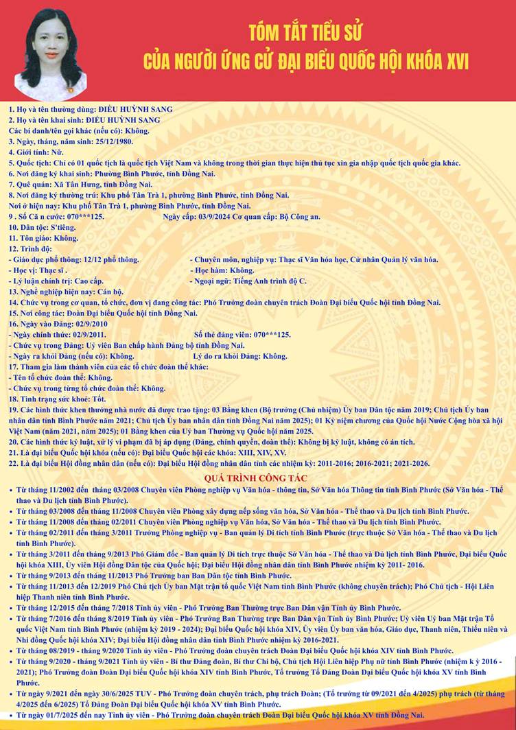 Tiểu sử tóm tắt các ứng cử viên Đại biểu Quốc Hội khóa XVI