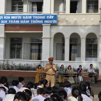 Trực tiếp trong buổi tuyên truyền trước cờ có đồng chí: Nguyễn Tấn Phát – cán bộ, công an giao thông tỉnh Đồng Nai. Trong buổi tuyên truyền có 536 học sinh cùng BGH và các GVCN nhà trường cùng dự.