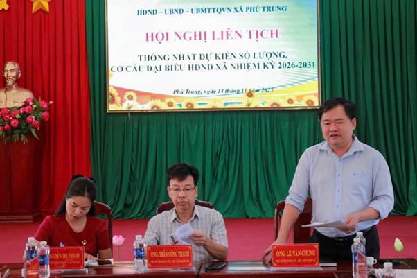 Sáng ngày 14/11/2025, đồng chí Trần Công Thanh – Phó Bí Thư Thường trực Đảng ủy, Chủ tịch HĐND xã chủ trì Hội nghị liên tịch giữa Thường trực HĐND, UBND, UBMTTQVN xã để dự kiến cơ cấu, thành phần và số lượng người được giới thiệu ứng cử đại biểu HĐND xã nhiệm kỳ 2026 -2031.