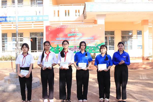 Nhằm kịp thời động viên tinh thần vượt khó và nỗ lực trong phong trào Đội, thay mặt Ban Thường vụ Xã đoàn, đồng chí Lê Thị Oanh đã trao tặng các phần quà ý nghĩa cho 5 bạn đội viên, đoàn viên có thành tích xuất sắc. Đây không chỉ là phần thưởng cá nhân mà còn là động lực để toàn thể học sinh nhà trường cùng phấn đấu, sớm được đứng vào hàng ngũ của Đoàn TNCS Hồ Chí Minh.