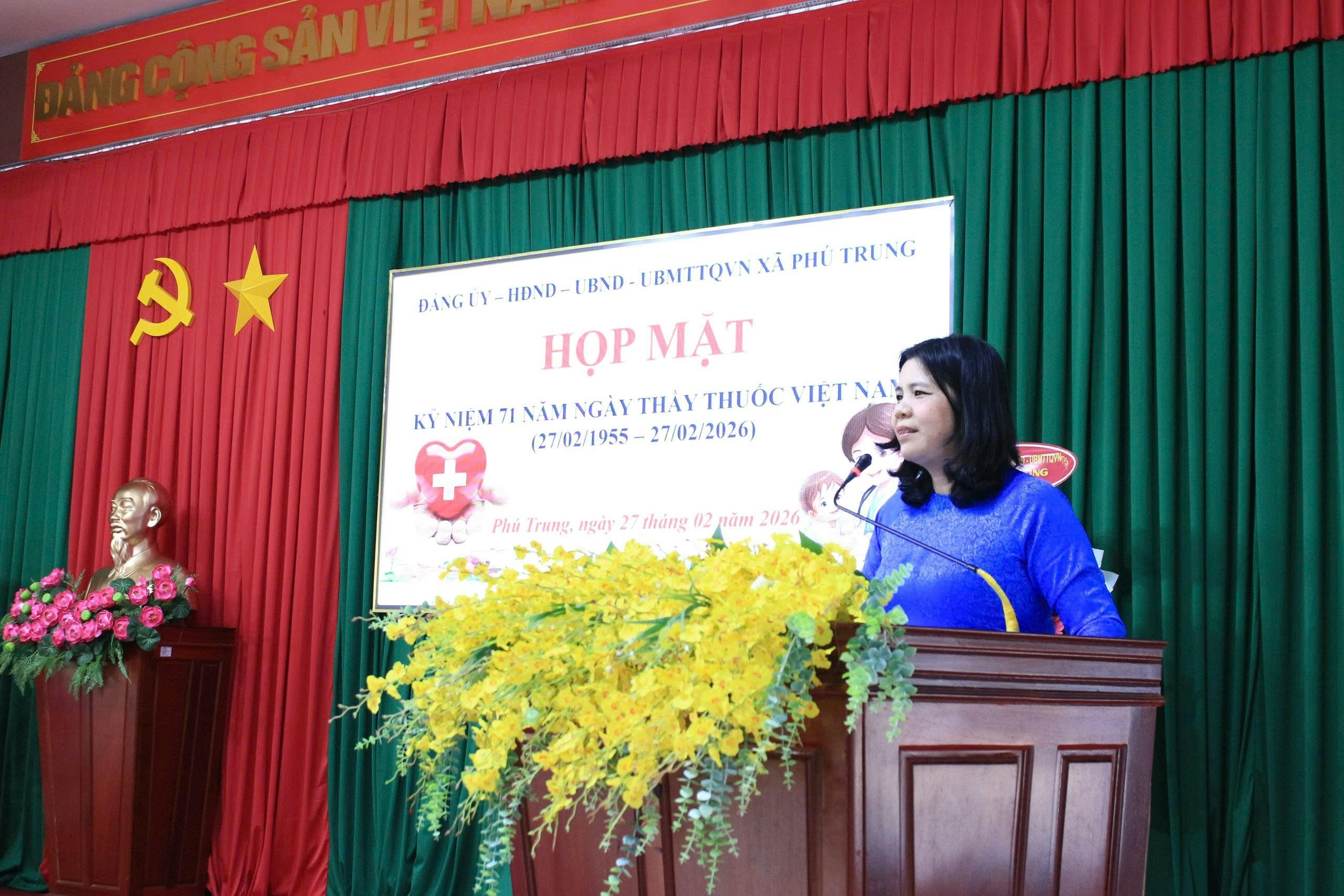 <p style="margin-left:0px;text-align:justify;">Nhân dịp kỷ niệm <strong>71 năm Ngày Thầy thuốc Việt Nam (27/02/1955 – 27/02/2026)</strong>, Đảng ủy – HĐND – UBND – Ủy ban MTTQ Việt Nam xã Phú Trung trân trọng gửi lời chúc mừng tốt đẹp nhất tới đội ngũ y, bác sĩ, cán bộ, nhân viên Trạm Y tế xã; chúc các đồng chí luôn mạnh khỏe, vững vàng y đức, tiếp tục cống hiến vì sự nghiệp chăm sóc và bảo vệ sức khỏe nhân dân, xứng đáng với lời dạy thiêng liêng của Bác Hồ kính yêu.</p>