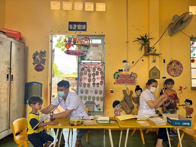 <span style="font-size:12pt"><span style="line-height:normal"><span style="font-family:Aptos,sans-serif"><span style="font-size:14.0pt"><span style="font-family:&#039;Times New Roman&#039;,serif">Buổi khám do đội ngũ y, bác sĩ giàu kinh nghiệm trực tiếp thực hiện với các nội dung: kiểm tra thể lực, dinh dưỡng, răng miệng, tai – mũi – họng, phát hiện sớm các bệnh lý học đường và tư vấn chăm sóc sức khỏe cho trẻ. Đây là hoạt động thiết thực giúp theo dõi sự phát triển của trẻ, đồng thời kịp thời phát hiện và can thiệp các vấn đề sức khỏe ngay từ sớm.</span></span></span></span></span><br />