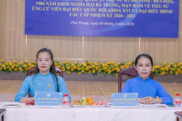 (Bản tin Phú Trung) – Chiều ngày 04/3/2026, tại Hội trường UBMTTQVN xã Phú Trung, Hội Liên hiệp Phụ nữ (LHPN) xã đã tổ chức buổi Họp mặt kỷ niệm 116 năm Ngày Quốc tế Phụ nữ (08/3/1910 – 08/3/2026) và 1986 năm Khởi nghĩa Hai Bà Trưng. Sự kiện năm nay đặc biệt gắn liền với công tác chuẩn bị cho cuộc bầu cử đại biểu Quốc hội và HĐND các cấp nhiệm kỳ 2026 – 2031.