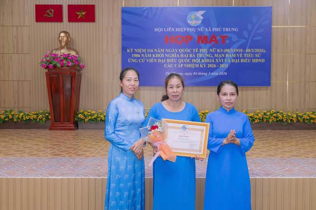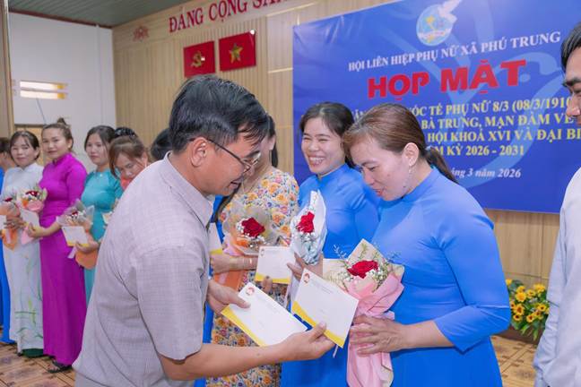 Trong không khí phấn khởi, rộn ràng của những ngày đầu tháng Ba – tháng tôn vinh vẻ đẹp và vai trò của phụ nữ. Chiều ngày 04/3/2026, tại Hội trường UBMTTQVN xã Phú Trung, Hội Liên hiệp Phụ nữ xã Phú Trung đã long trọng tổ chức buổi Họp mặt kỷ niệm 116 năm Ngày Quốc tế Phụ nữ (08/3/1910 – 08/3/2026) và 1986 năm Khởi nghĩa Hai Bà Trưng góp phần khơi dậy niềm tự hào, tinh thần đoàn kết và khát vọng cống hiến của phụ nữ địa phương.