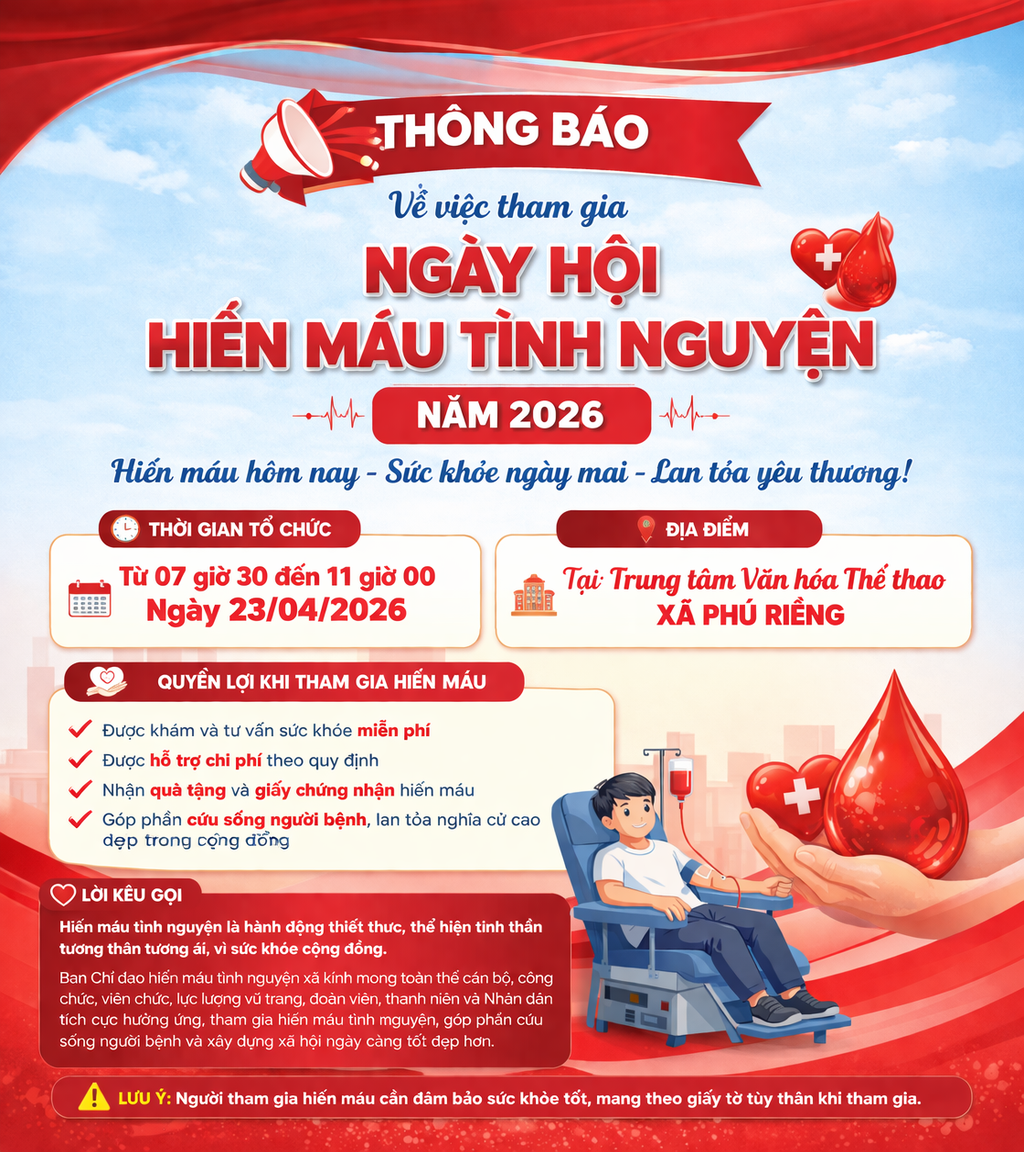 THÔNG BÁO HIẾN MÁU TÌNH NGUYỆN NĂM 2026