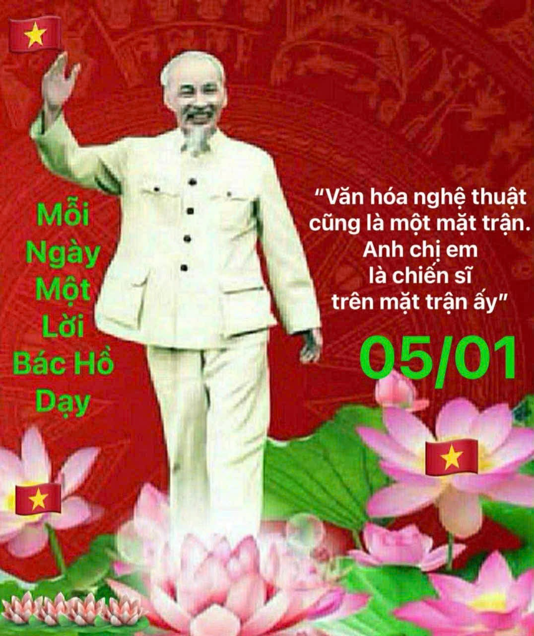Đây là lời của Chủ tịch Hồ Chí Minh trong Thư gửi các họa sĩ nhân dịp triển lãm hội họa. Bức thư có đoạn: “Gửi anh chị em họa sĩ, biết tin có cuộc trưng bày, tiếc vì bận quá, không đi xem được. Tôi gửi lời thân ái hỏi thăm anh chị em. Nhân tiện, tôi nói vài ý kiến của tôi đối với nghệ thuật, để anh chị em tham khảo. Văn hóa nghệ thuật cũng là một mặt trận. Anh chị em là chiến sĩ trên mặt trận ấy”, đăng trên Báo Cứu quốc, số 1986, ngày 5-1-1952, trong bối cảnh toàn dân đang thực hiện đường lối kháng chiến “toàn dân, toàn diện” chống thực dân Pháp xâm lược.